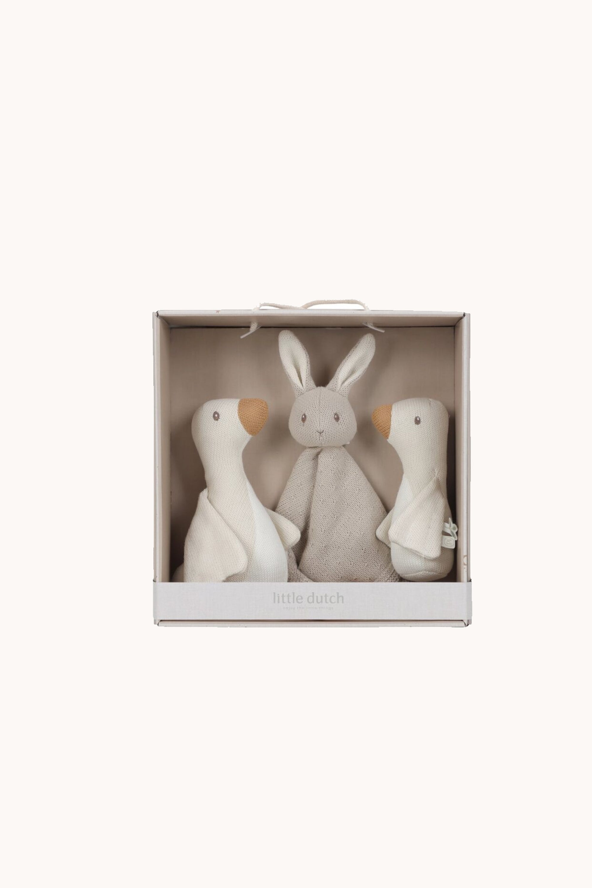 A tender beginning for a new life. The knitted gift set from the Newborn Naturals collection is a loving gift for newborn babies. In the beautiful box are three soft essentials that invite cuddling and resting. The knitted comfort blanket provides solace and security, the rattle stimulates the senses, and the soft teething ring helps with the arrival of the first teeth. Everything is made from soft materials in calm, natural tones. Specially tailored for the very first months. A stylish and warm welcome for the baby and a heartwarming gesture for new parents.