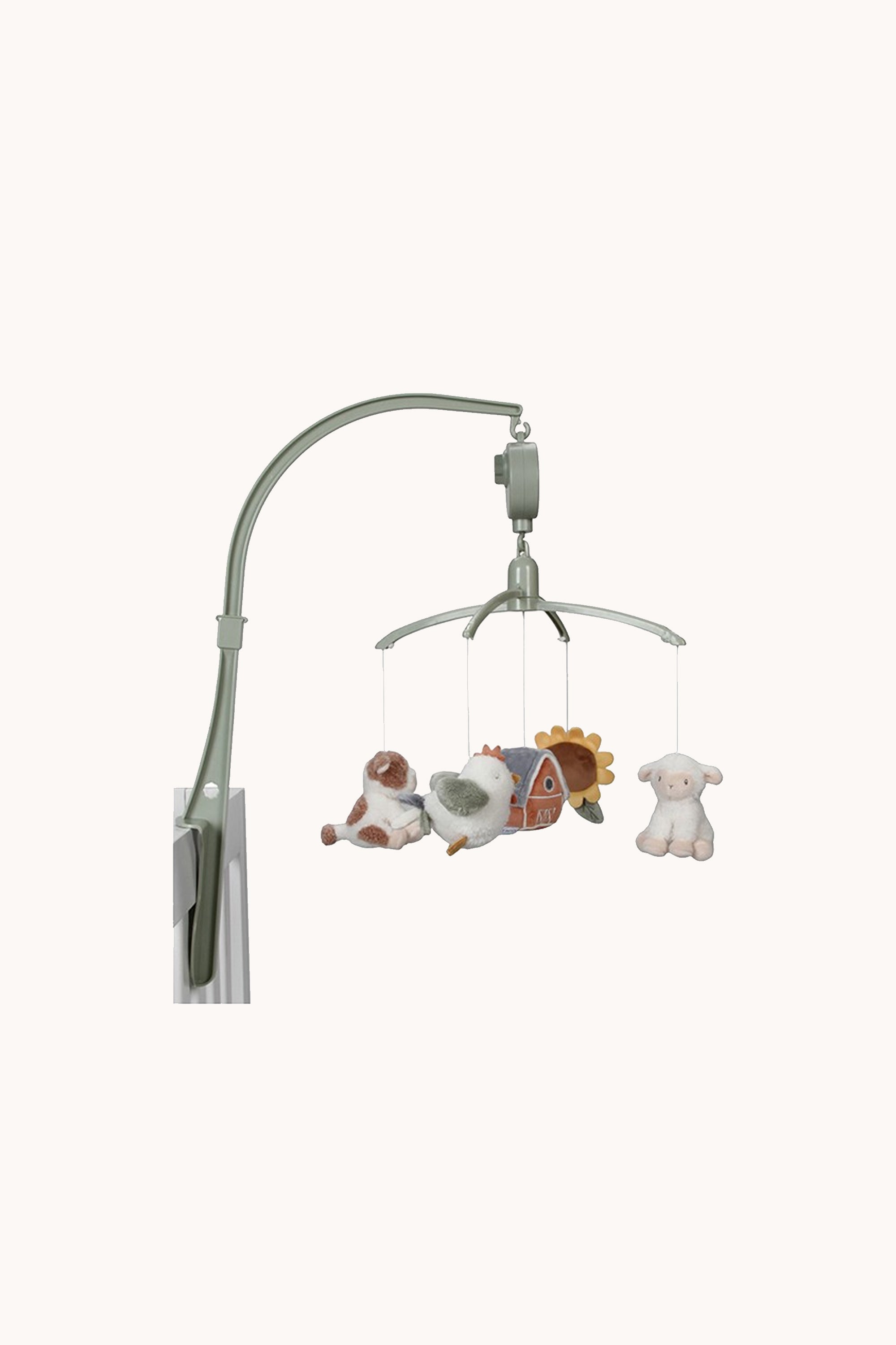 This beautiful Little Dutch music mobile is soothing for babies thanks to the sweet lullaby. The mobile has five toys from the Little Farm collection hanging from it. Babies enjoy watching the movement of these toys, which stimulates their visual development. The music mobile is suitable from birth and easy to attach to the crib or playpen.