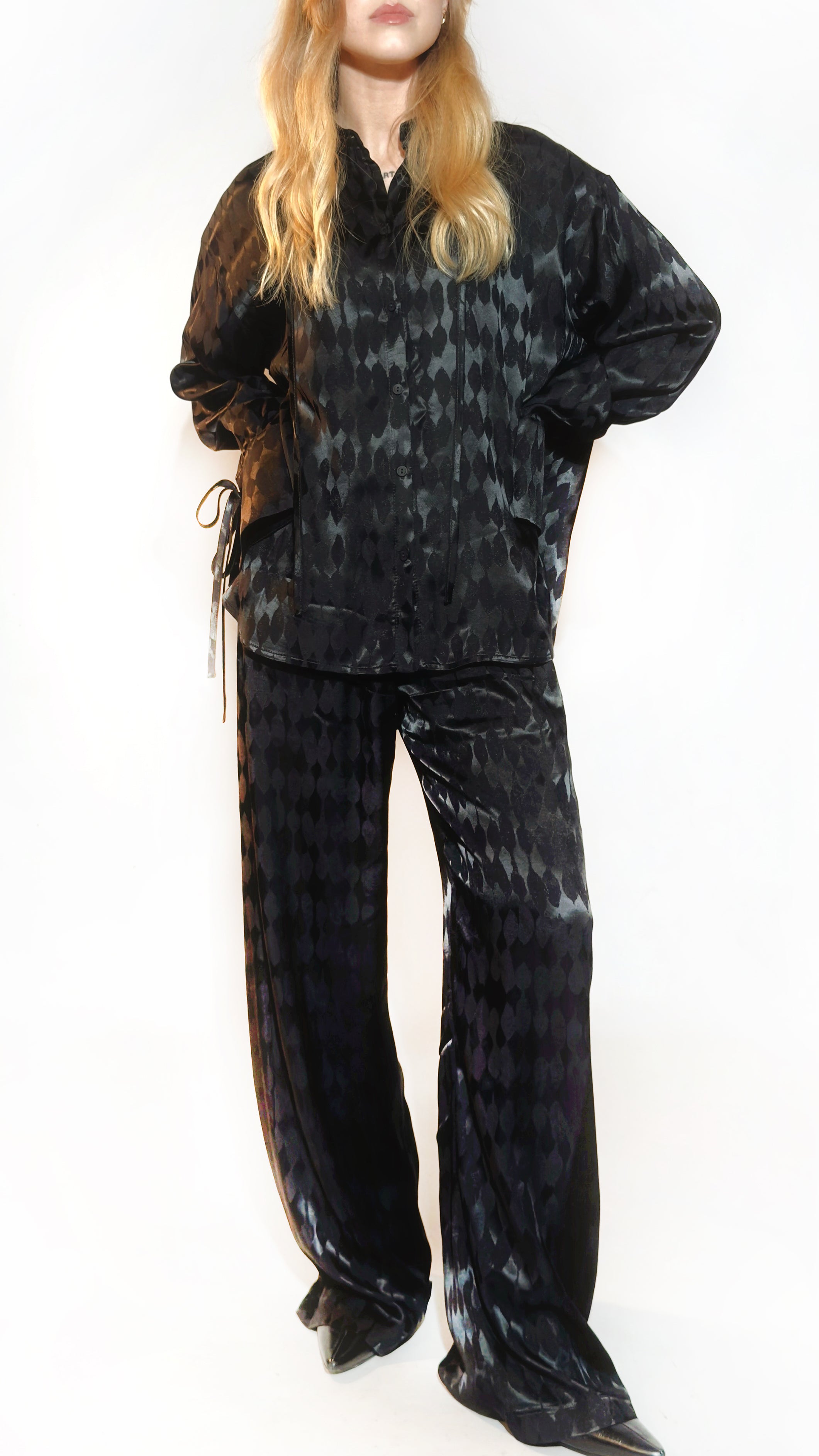 Black festive pants, long. Lazy Monday is a women’s clothing brand designed for those who believe comfort and style can go hand in hand—even on a Monday. Specializing in elevated loungewear, Lazy Monday offers unique, thoughtfully crafted pieces perfect for slow mornings, cozy afternoons, or anytime you want to take it easy without compromising on style. Our philosophy is simple: Mondays shouldn’t mean chaos and rushing. Instead, embrace the calm, slip into comfort, and take on the week your way—soft, stylish, and effortlessly relaxed.