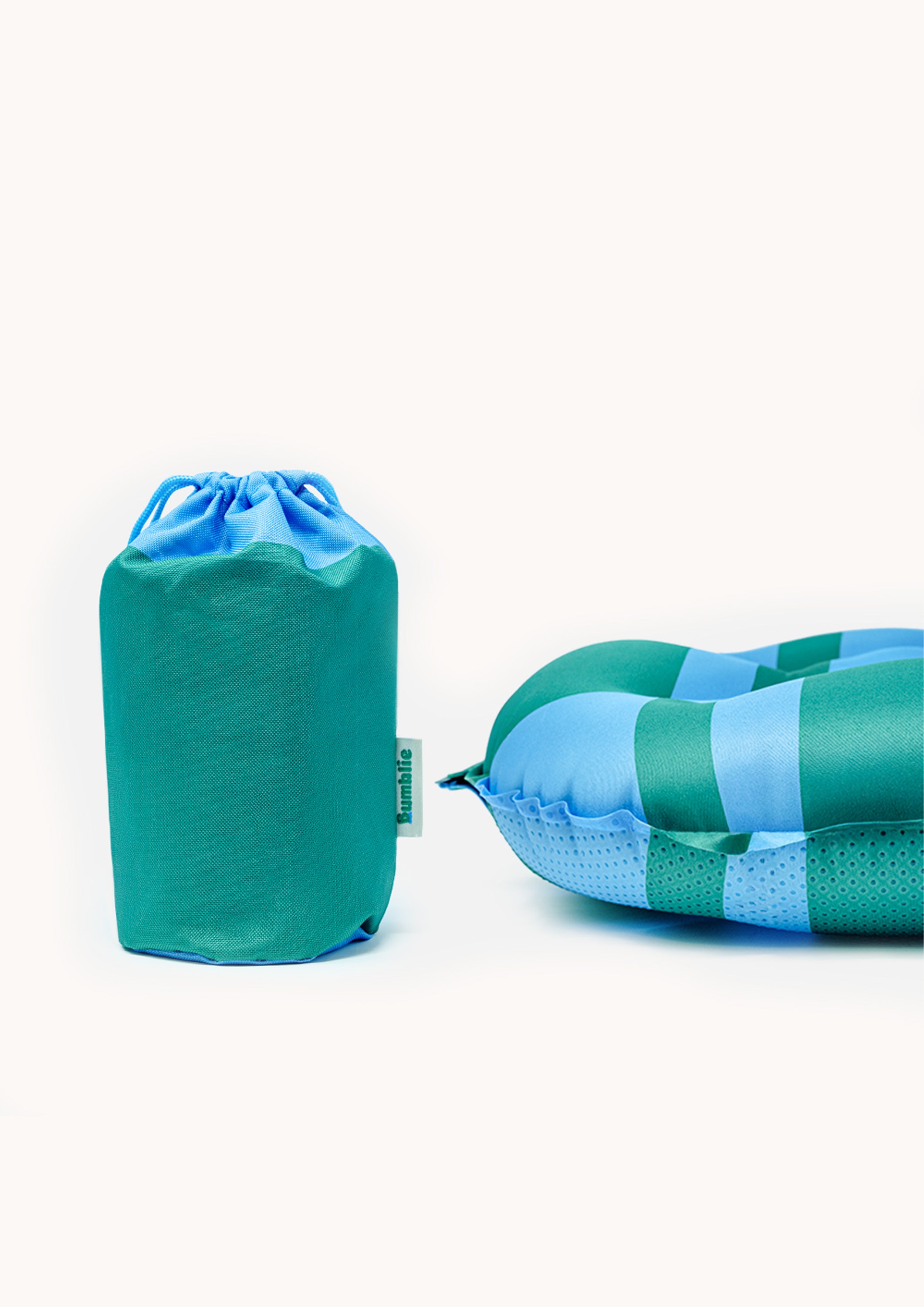 an elastic fastening strap, inflates and deflates in seconds, folds