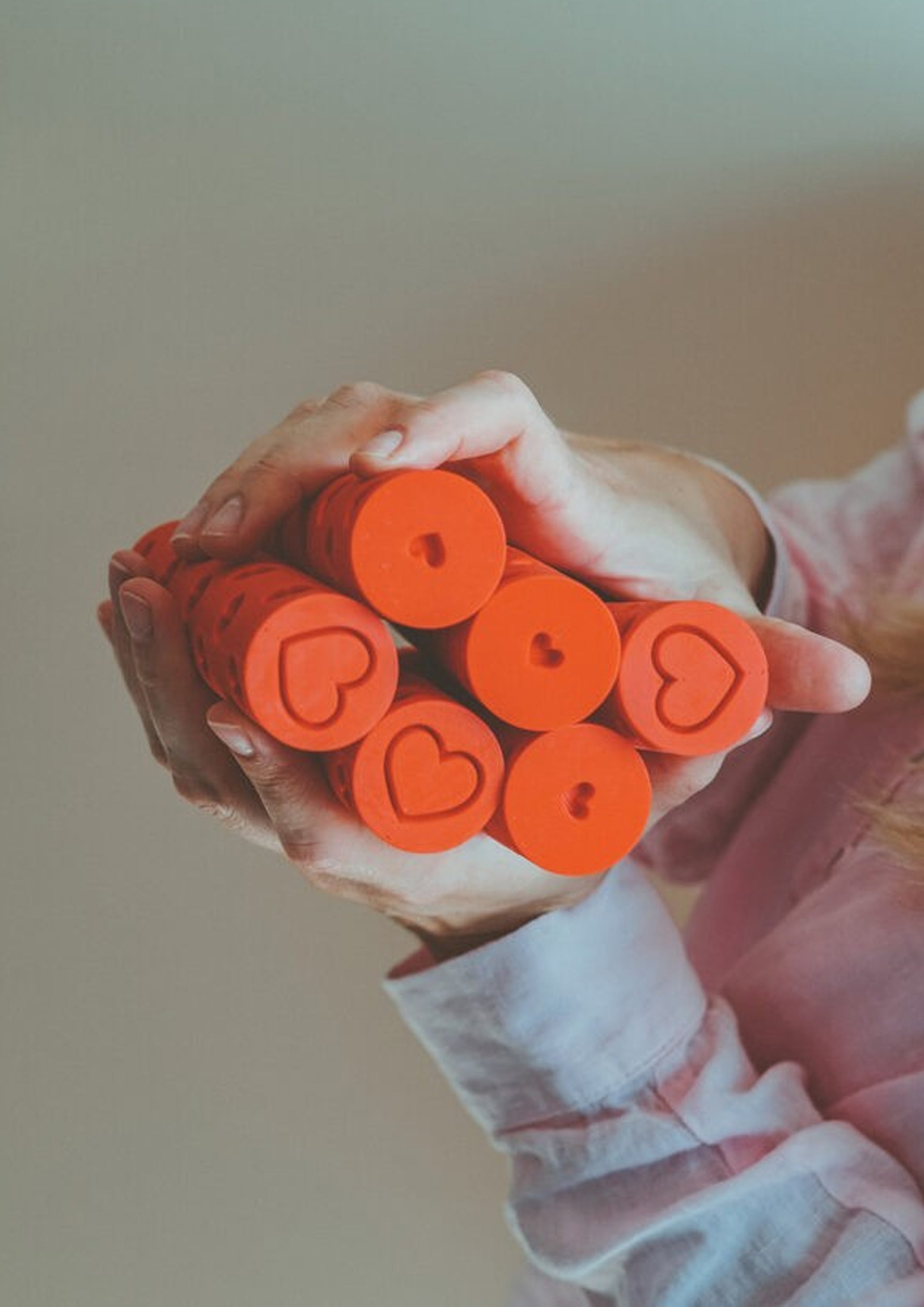 HEART pattern roll for amazing playtime for kids. Rolling pin makes beautiful HEART pattern AND- you can use it as a stamp too (see photos). There are 2 different stamps- big heart and small heart. Let’s have a fun!