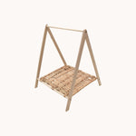 Natural wood & wicker clothes rack. For doll clothes. Without hangers or clothes. Made in France.