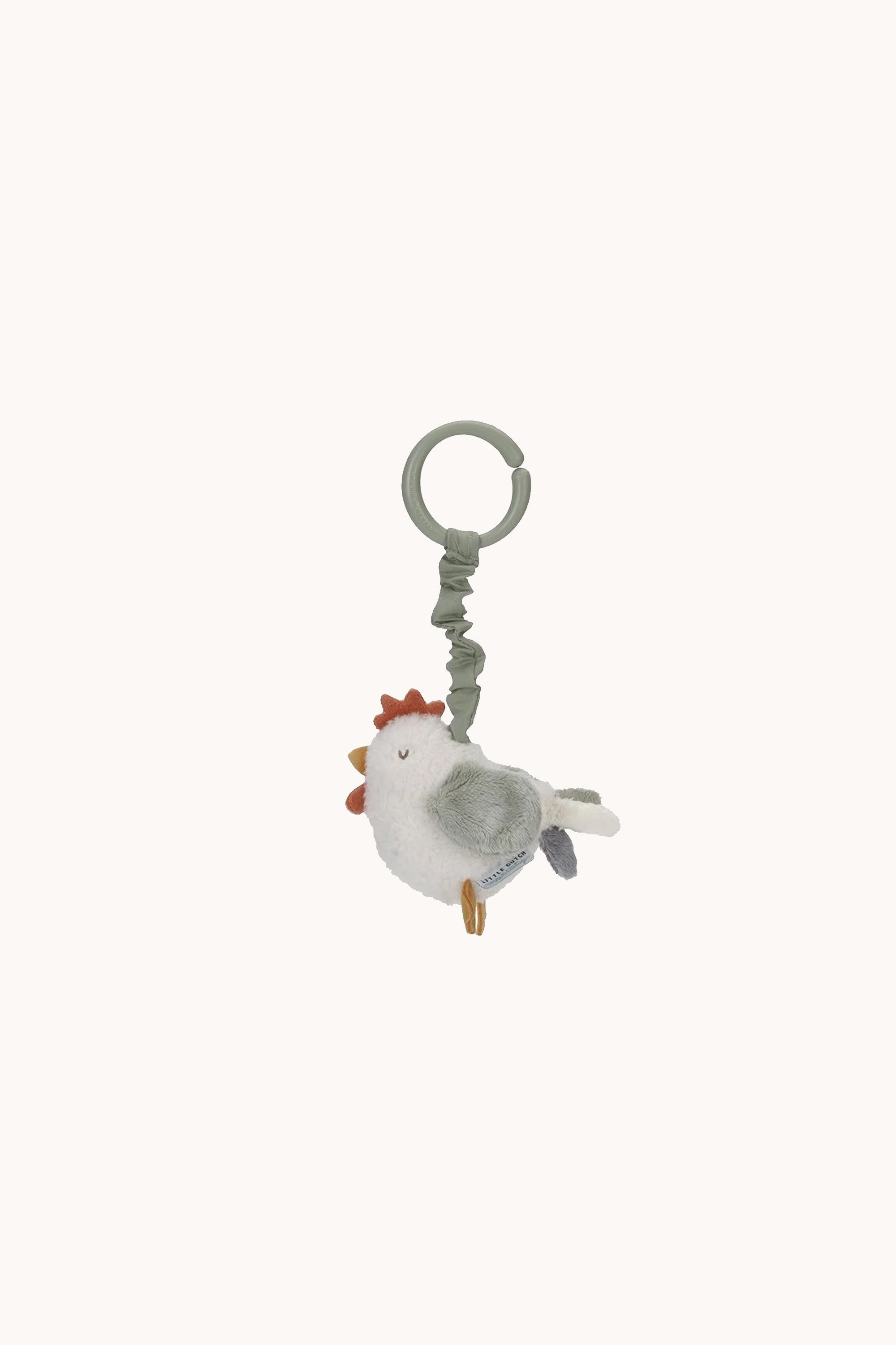 Move around! This cheerful little chicken is designed with playful textures. If you pull on her, she starts to vibrate. You can easily attach this fun toy to a car seat, a playpen or a stroller. Made for little hands to grab, it provides endless entertainment at home and on the go. Laughter and giggles guaranteed.